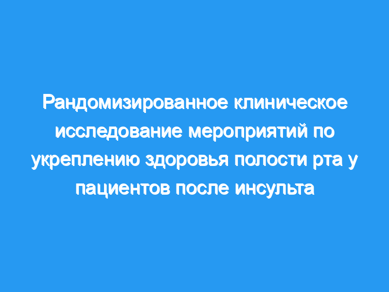Оценить эффективность мероприятий по укреплению здоровья полости рта в отношении клинического здоровья полости рта. Дизайн: Однослепое рандомизированное контролируемое исследование, проводимое в течение 3 недель стационарной реабилитации.