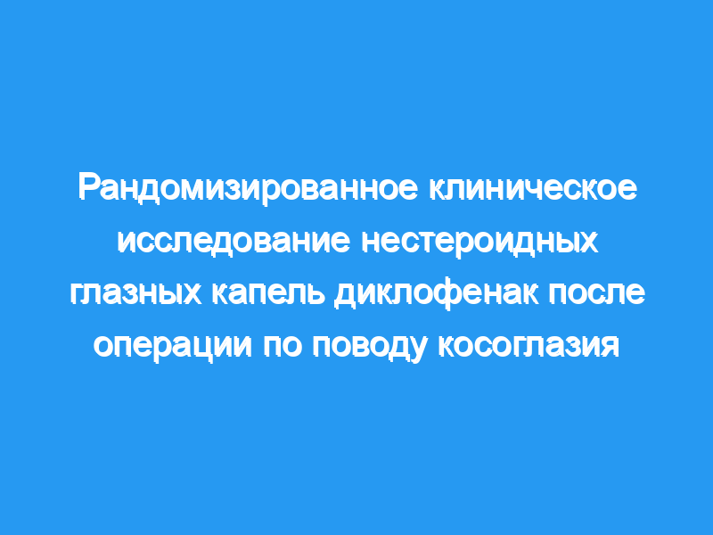 В первую неделю после операции по поводу косоглазия местное применение диклофенака оказалось по меньшей мере столь же эффективным, как и преднизолон, в борьбе с воспалением и дискомфортом с меньшей задержкой заживления послеоперационной раны. Местное применение диклофенака, нестероидного противовоспалительного средства, может быть рассмотрено для применения после операции по поводу косоглазия вместо кортикостероидов.
