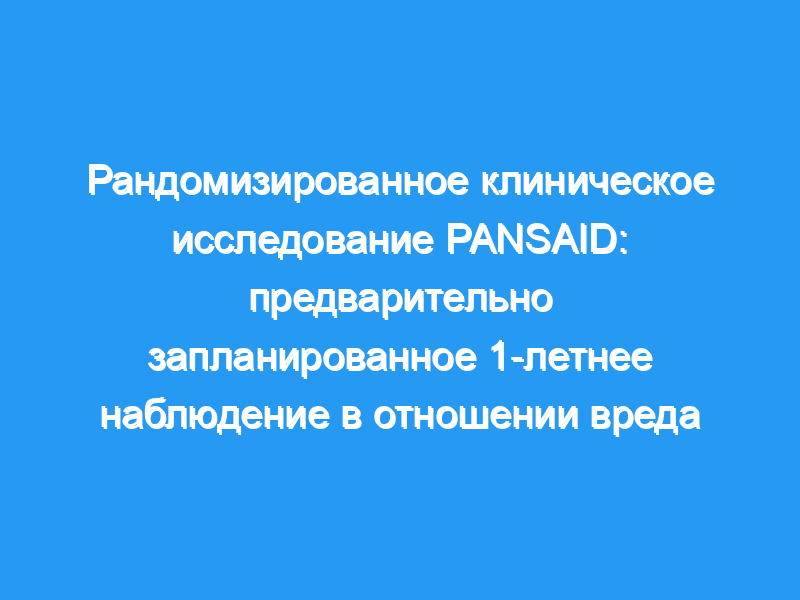 В этом заранее запланированном долгосрочном последующем исследовании, проведенном в рамках исследования PANSAID, мы использовали данные датских национальных медицинских реестров (Датский национальный реестр пациентов и Датская система регистрации актов гражданского состояния) в дополнение к 90-дневному наблюдению в первоначальном исследовании. Первичным исходом была доля пациентов с одним или несколькими серьезными нежелательными явлениями в течение 1 года.