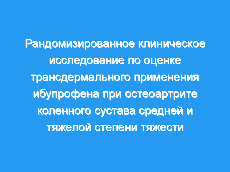 Изучить безопасность и эффективность новой трансдермальной формы ибупрофена (VALE®-ibuprofen), содержащей 10% ибупрофена, по сравнению с плацебо в рандомизированном двойном слепом клиническом исследовании, для улучшения клинического состояния у пациентов с умеренным и тяжелым болезненным остеоартритом коленного сустава. План исследования: Рандомизированное плацебо-контролируемое двойное слепое многоцентровое клиническое исследование 2-й фазы.