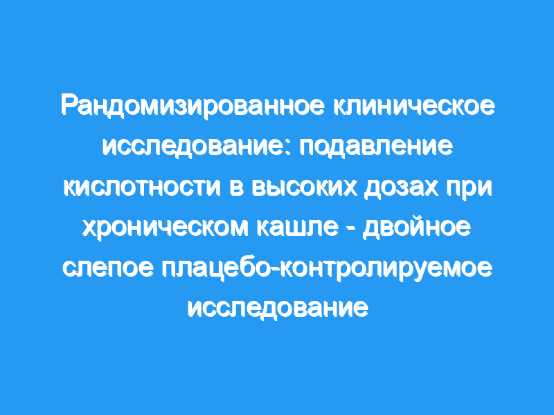 Оценить влияние подавления кислотности в высоких дозах ингибиторами протонной помпы (ИПП) на хронический кашель у пациентов с редкой изжогой или без нее.
