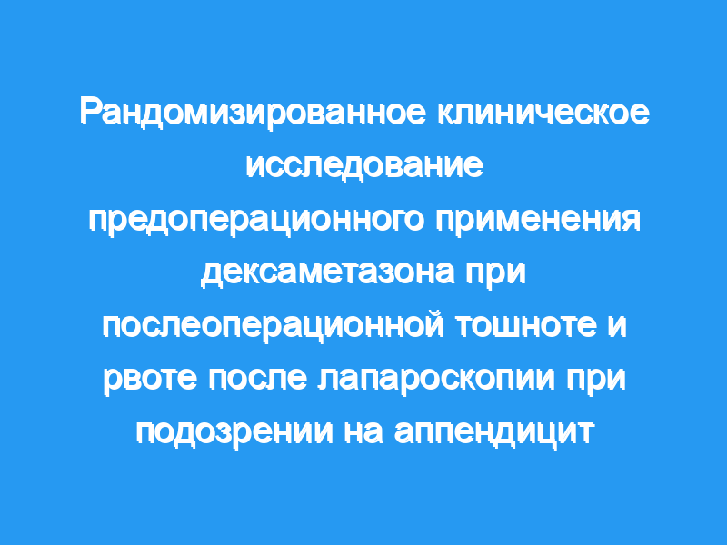 В нескольких исследованиях изучалось влияние предоперационного дексаметазона на острых хирургических пациентов. В этом исследовании изучалось действие 8 мг дексаметазона, введенного внутривенно за 30 мин до операции при подозрении на острый аппендицит.