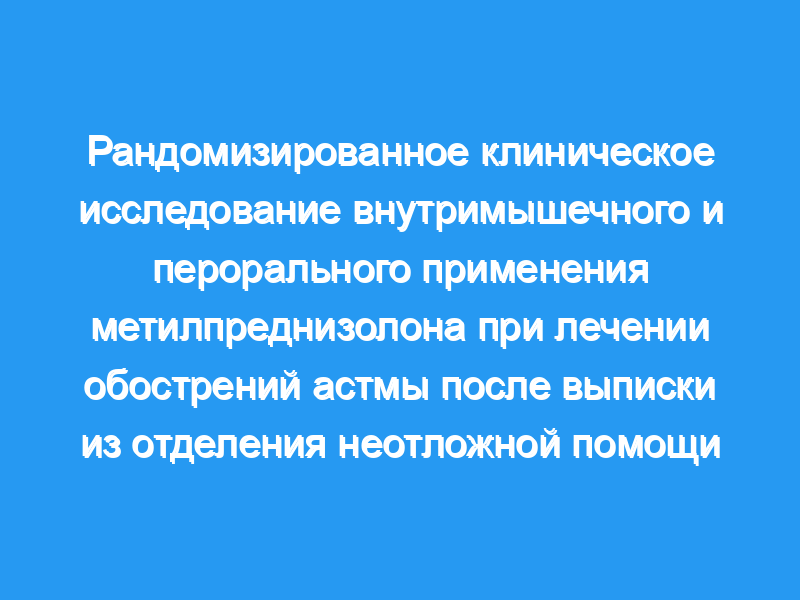 Рандомизированное двойное слепое плацебо-контролируемое исследование однократной внутримышечной дозы 160 мг депо метилпреднизолона против 8-суточное снижение общей дозы 160 мг перорального метилпреднизолона у взрослых пациентов с астмой (возрастной диапазон от 18 до 45 лет), которые были выписаны из отделения неотложной помощи после стандартизированного лечения острого обострения. Первичной конечной точкой был рецидив, который определялся как необходимость обращения за внеплановой помощью в кабинет врача, клинику или ЭД в связи с симптомами персистирующей или обостряющейся астмы в течение 10 дней после выписки из ЭД.