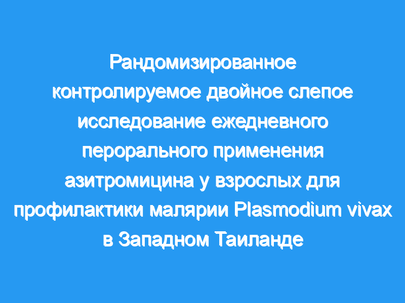 Защитная эффективность (ПЭ) азитромицина составила 98% для P. vivax (95% доверительный интервал [ДИ] = 88-100%). Было слишком мало случаев, чтобы достоверно оценить эффективность азитромицина в отношении P. falciparum (PE =71%, 95% C =-14-94%). Мы пришли к выводу, что ежедневный азитромицин был безопасным, хорошо переносимым и обладал высокой эффективностью для профилактики малярии P. vivax.