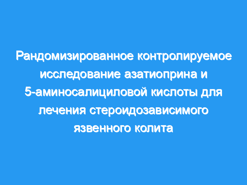 Предпосылки и цели: Имеются ограниченные данные, основанные на фактических данных, касающиеся применения азатиоприна при язвенном колите. Мы стремились сравнить эффективность азатиоприна и пероральной 5-аминосалициловой кислоты в индуцировании ремиссии стероидозависимого язвенного колита.