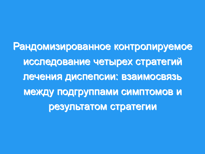 Хотя это исследование имеет относительно низкую мощность, мы пришли к выводу, что использование подгрупп симптомов представляется разумным подходом при выборе эмпирической терапии при диспепсии. Пациенты с рефлюксоподобными симптомами, по-видимому, имеют наилучший прогноз в течение первого года при любой стратегии.