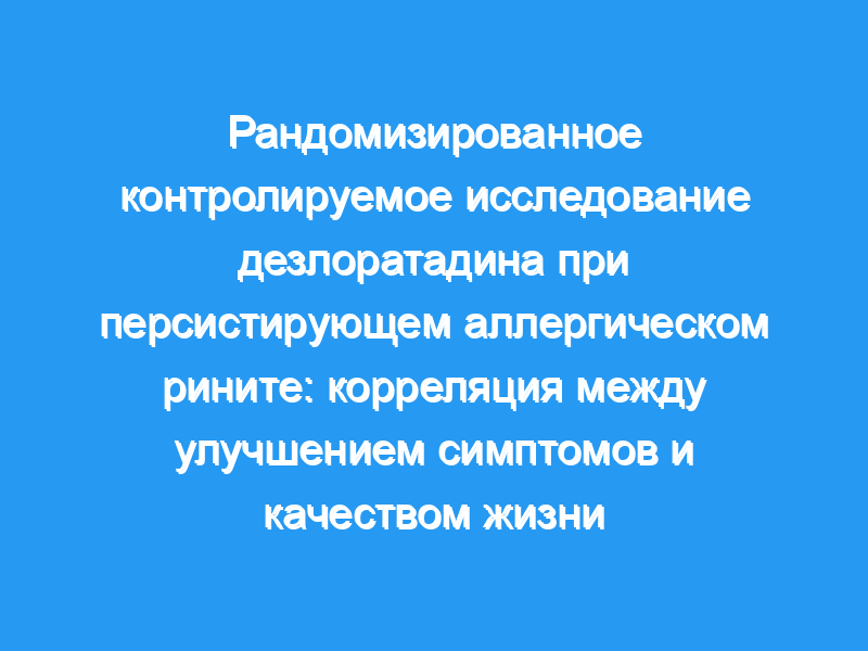 Симптомы аллергического ринита (АР) могут влиять на эмоциональное состояние, качество жизни (QOL) и производительность труда, особенно при персистирующей АР (PER). Было показано, что дезлоратадин, антагонист Н1-рецепторов, эффективен против назальных и неназальных симптомов АР и улучшает качество жизни. Были проведены предварительные анализы, чтобы оценить, коррелирует ли улучшение симптомов, вызванное дезлоратадином, с улучшением качества жизни и продуктивности.