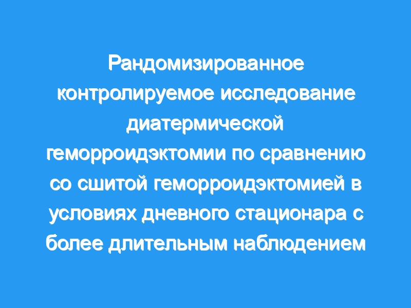 Геморроидэктомия является наиболее эффективным долгосрочным методом лечения геморроя. Несмотря на то, что геморроидэктомия может быть выполнена в дневное время с высокой степенью удовлетворенности пациента, пациенты берут в среднем 14 дней отпуска после операции. Считается, что сшитая геморроидэктомия менее болезненна, чем обычная геморроидэктомия, и должна позволить раньше вернуться к работе. Целью данного исследования было сравнить как непосредственные, так и отдаленные результаты сшитой геморроидэктомии с диатермической геморроидэктомией у пациентов с выпадением внутренних геморроидальных узлов в условиях дневного стационара.