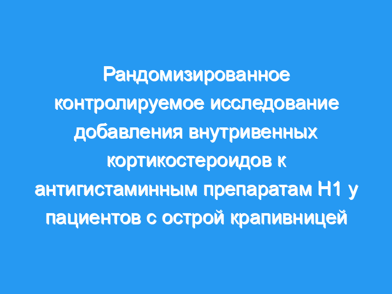 Острая крапивница является распространенным дерматологическим заболеванием в отделениях неотложной помощи (EDs). Основная терапия включает в себя борьбу с зудом с помощью антигистаминных препаратов. Хотя руководящие принципы поощряют использование кортикостероидов в дополнение к антигистаминным препаратам H1, хорошо спланированных клинических испытаний, оценивающих этот подход, мало.