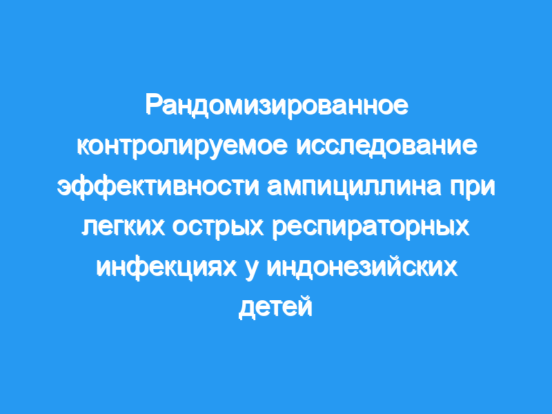 Рекомендуемым лечением легких острых респираторных инфекций (ОРЗ) у детей является только поддерживающая терапия, но многие врачи, особенно в развивающихся странах, продолжают назначать лечение антибиотиками, поскольку считают, что это предотвращает прогрессирование более тяжелого ОРЗ. Чтобы выяснить, дает ли лечение ампициллином какую-либо пользу по сравнению с поддерживающим лечением, было проведено рандомизированное контролируемое исследование среди 889 детей (в возрасте до 5 лет) с легкой формой ОРЗ в Индонезии.