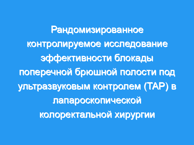 Оптимальная анальгезия после лапароскопической колоректальной резекции еще не определена, однако недавние исследования поставили под сомнение роль послеоперационной эпидуральной анестезии, предполагая, что другие методы обезболивания могут быть предпочтительнее. Целью этого рандомизированного контролируемого исследования была оценка влияния блокады поперечной плоскости живота (TAP) на потребность в опиоидах у пациентов, перенесших лапароскопическую колоректальную резекцию.