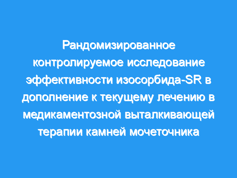 В проспективном рандомизированном контролируемом клиническом исследовании мы оценили эффективность медикаментозной выталкивающей терапии изосорбидом-SR в дозе 40 мг у пациентов с камнями мочеточника (≤10 мм). Пациенты с камнями мочеточника при УЗИ или УЗИ мочевыводящих путей были рандомизированы для получения метилпреднизолона плюс целекоксиб без (контрольная группа) и с изосорбидом-SR 40 мг (группа лечения) в течение 21 дня.