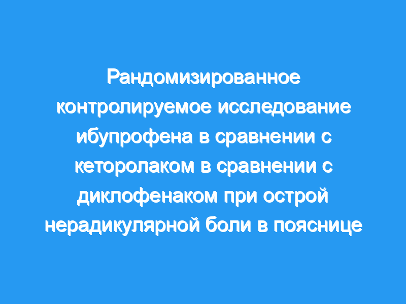 Нестероидные противовоспалительные препараты (НПВП) являются препаратами первой линии для лечения острой боли в пояснице (LBP). Неясно, влияет ли выбор НПВП на результаты. Мы сравнили ибупрофен, кеторолак и диклофенак для лечения острого, нерадикулярного LBP.