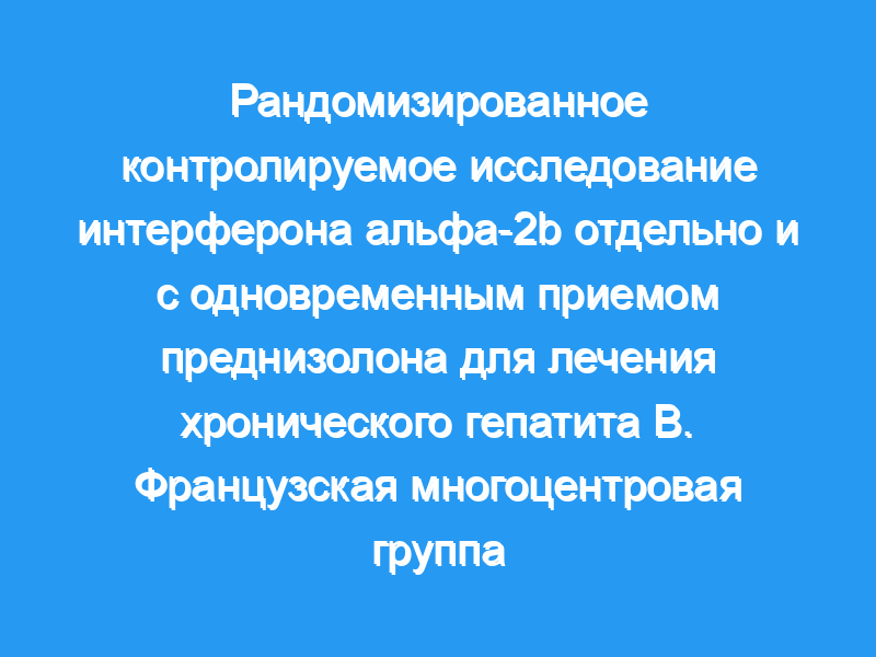 Целью исследования была оценка безопасности и эффективности интерферона альфа-2b с сопутствующим лечением кортикостероидами или без него у пациентов с хроническим гепатитом В. Пятьдесят шесть пациентов были случайным образом распределены на две группы лечения.