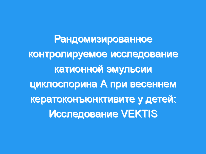 Весенний кератоконъюнктивит (ВКК) — это хроническое, аллергическое и потенциально тяжелое заболевание глаз, поражающее детей и подростков, которое может привести к ухудшению качества жизни (КЖ) и потере зрения. В этом исследовании оценивалась эффективность и безопасность исследуемой терапии тяжелого ВКК, катионной эмульсии циклоспорина А (CsA) (CE), эмульсии «масло в воде» с повышенной биодоступностью по сравнению с обычными препаратами CsA. Дизайн: Исследование весеннего кератоконъюнктивита (VEKTIS) представляет собой многоцентровое исследование фазы 3 с двойной маскировкой, контролируемое транспортным средством. Участники: Педиатрические пациенты (от 4 до 18 лет) с активным тяжелым VKC (3 или 4 степени по шкале тяжести Бонини) и тяжелым кератитом (оценка окрашивания роговицы флуоресцеином [CFS] 4 или 5 баллов по модифицированной оксфордской шкале).