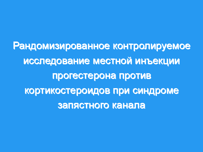 Ряд исследований продемонстрировали нейропротекторные эффекты прогестерона и его влияние на восстановление после повреждения нервной системы. В нескольких исследованиях изучалась эффективность местного прогестерона при синдроме запястного канала. Целью данного исследования было сравнение долгосрочных эффектов местных инъекций прогестерона и кортикостероидов у пациентов с легким и умеренным синдромом запястного канала.