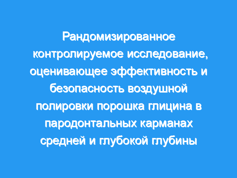 Было показано, что наддесневая воздушная полировка с использованием порошка глицина (SupraGPAP) удаляет биопленки в неглубоких пародонтальных карманах. В этом исследовании оценивалась эффективность и безопасность поддесневой воздушной полировки глициновым порошком (SubGPAP) в пародонтальных карманах средней и глубокой глубины.