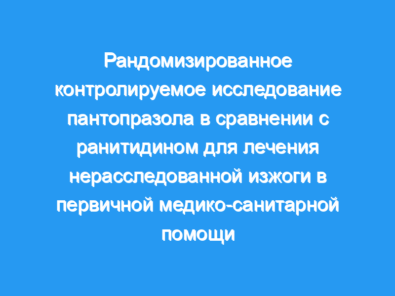 Исследовать, обеспечивает ли пантопразол (20 мг/сут) значительно больший контроль симптомов, чем ранитидин (300 мг/сут) у пациентов с гастроэзофагеальной рефлюксной болезнью (ГЭРБ). Дизайн: Многоцентровое, рандомизированное, двойное слепое, параллельное групповое сравнение. 76 врачей общей практики в северо-западном Сиднее и Ньюкасле, Новый Южный Уэльс (Австралия), с 19 января 1999 года по 22 сентября 2000 года. Пациенты: 307 пациентов в возрасте 18 лет и старше с симптоматическим GORD. Вмешательства: Пантопразол (20 мг один раз в день) или ранитидин (150 мг два раза в день). Основные показатели результатов: Частота и тяжесть изжоги оценивались пациентом с использованием шкалы оценки желудочно-кишечных симптомов (GSRS) и дневника изжоги пациента.