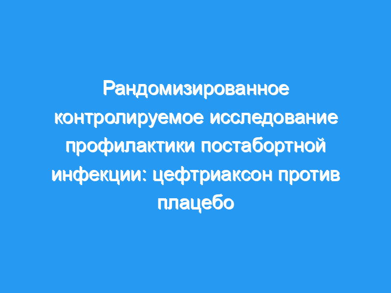 Это исследование продемонстрировало значительное снижение послеоперационных воспалительных заболеваний органов малого таза у пациенток с низким риском, которые обращались за законным абортом в первом триместре беременности, получавших послеоперационное лечение цефтриаксоном. Не было продемонстрировано существенной разницы между пациентами высокого риска, получавшими цефтриаксон или ампициллин/ампициллин и метронидазол.