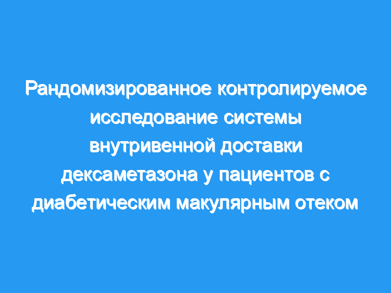 В глазах с персистирующим DME лечение 700 мкг интравитреального дексаметазона DDS хорошо переносится и приводит к значительному улучшению показателей BCVA, центральной толщины сетчатки и утечки флуоресцеина по сравнению с наблюдением (статистически значимо на 90-й день). Применение в клинической практике: Дексаметазон DDS, 700 мкг, может иметь потенциал для лечения персистирующего DME. Пробная регистрация: clinicaltrials.gov Идентификатор: NCT00035906.