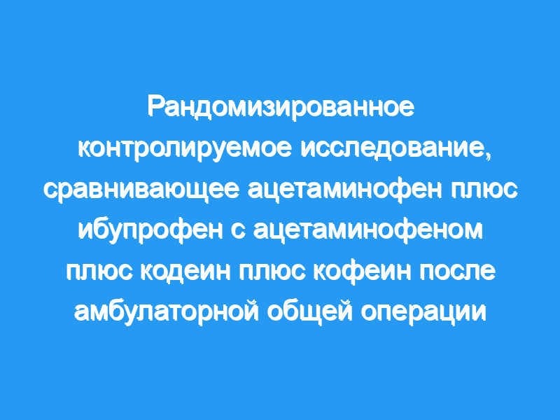 Наркотики широко используются в амбулаторной общей хирургии, но часто плохо переносятся с различной эффективностью. Возможной альтернативой является ацетаминофен в сочетании с НПВП. Целью этого исследования было сравнить эффективность ацетаминофена, кодеина и кофеина (тайленола № 3) с ацетаминофеном и ибупрофеном для купирования боли после амбулаторных общехирургических процедур. План исследования: Было проведено двойное слепое рандомизированное контролируемое исследование у пациентов, перенесших амбулаторное лечение паховой/пупочной/вентральной грыжи или лапароскопическую холецистэктомию. Пациенты были рандомизированы для приема ацетаминофена плюс кодеин плюс кофеин (Тайленол № 3) или ацетаминофена плюс ибупрофен (АцИБУ) 4 раза в день в течение 7 дней или до тех пор, пока боль не пройдет. Интенсивность боли, измеряемая четыре раза в день по визуальной аналоговой шкале, была основным результатом. Вторичные конечные точки включали частоту побочных эффектов, удовлетворенность пациента, количество дней, пока пациент не избавится от боли, и использование альтернативной анальгезии.