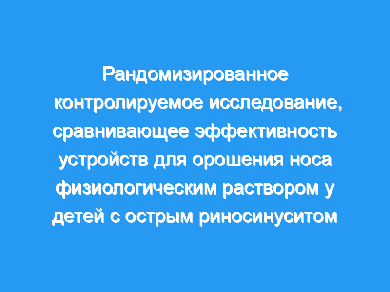 Использование сжимаемой бутылочки для промывания носа у детей с острым синуситом было связано с дальнейшим улучшением показателей эффективности и удовлетворенности по сравнению с использованием шприца, и не было никаких существенных различий в бактериальном заражении между методами.