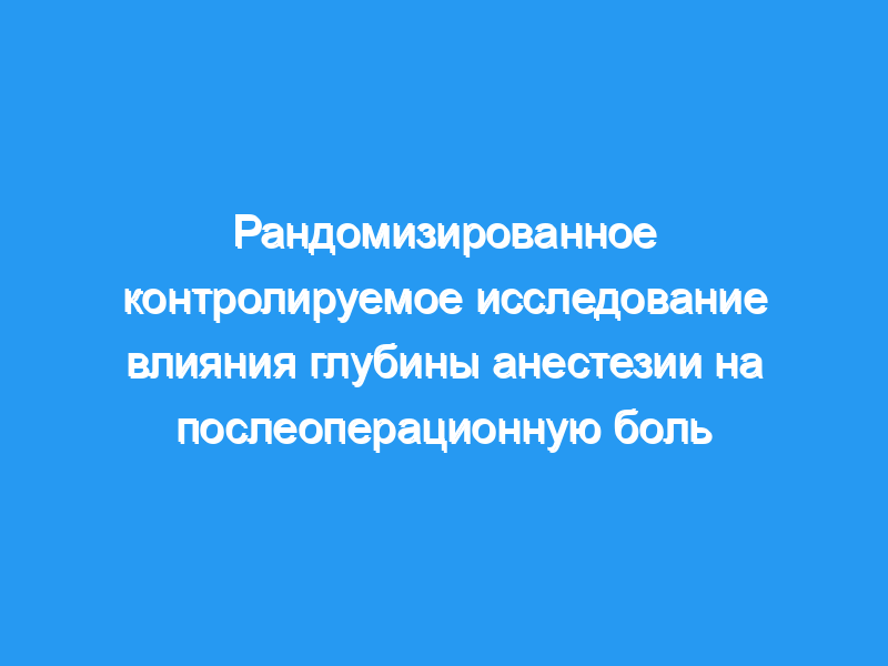 Наша гипотеза заключалась в том, что глубокая анестезия, оцениваемая по низкому целевому биспектральному индексу (BIS), равному 30-40, приведет к уменьшению послеоперационной боли, чем при обычной глубине анестезии.