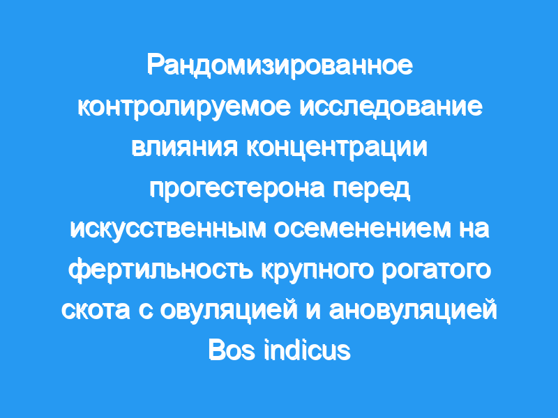 Изучить влияние концентрации прогестерона (P4) перед искусственным осеменением (ИИ) на фертильность крупного рогатого скота с овуляцией или ановуляцией Bos indicus. Дизайн: Рандомизированное контрольное исследование МЕТОДЫ: В исследовании приняли участие 162 телки и 96 лактирующих коров. На 10-12-й день животных обследовали с помощью трансректального ультразвука, вводили ПГ и исследовали на наличие желтого тела (CL). Те, у кого был CL, были выделены для эксперимента 1. На 0-й день им вводили интравагинальное устройство для высвобождения прогестерона (IVD), содержащее прогестерон (P4) (0,78 г), бензоат эстродиола (ODB) и физиологический раствор или PG для индуцирования высоких и низких концентраций циркулирующего P4 соответственно. Те, у кого не было CL, были повторно обследованы на 0-й день, а те, у кого не было CL при обоих обследованиях, были выделены для эксперимента 2. Коров и телок обрабатывали IVD, содержащим P4 в количестве 0,78 г или 1,56 г, чтобы вызвать низкие или высокие концентрации P4 соответственно. Внутривенные вливания удаляли на 7-й день и вводили ПГ и лошадиный хорионический гонадотропин (эКГ). Самки в период течки на 9-й день были осеменены, другим вводили ODB и осеменяли 22-26 ч спустя.