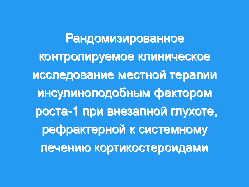 Положительный эффект местного IGF-1 применение на уровне слуха и его благоприятный профиль безопасности предполагают полезность для местной терапии IGF-1 у пациентов с внезапной глухотой. Регистрация испытания: Регистрационный номер клинических испытаний UMIN000004366, 30 октября 2010 года.