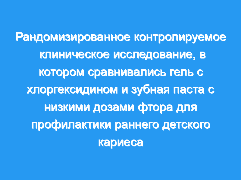 ЦЕЛИ. В этом рандомизированном контролируемом исследовании сравнивалась эффективность 0,12% геля с хлоргексидином (CHX) и 304% зубной пасты с фтором для профилактики раннего детского кариеса (ECC) в когорте новорожденных к 24 месяцам.
