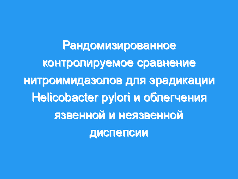 Сто двадцать диспепсических H. pylori-позитивных пациентов с эндоскопически выявленной язвенной болезнью [DU (n = 65), GU (n = 12)] или неязвенной диспепсией (NUD, n = 43) были рандомизированы для получения 1-недельного курса двукратного ежедневно омепразол 20 мг, кларитромицин 250 мг и либо метронидазол 400 мг (ОКМ), либо тинидазол 500 мг (ОКТ) двойным слепым методом. Эрадикацию H. pylori, безопасность и побочные эффекты лечения, оценку диспепсических симптомов и потребление антисекреторных препаратов оценивали через 6 недель и 1 год после лечения.