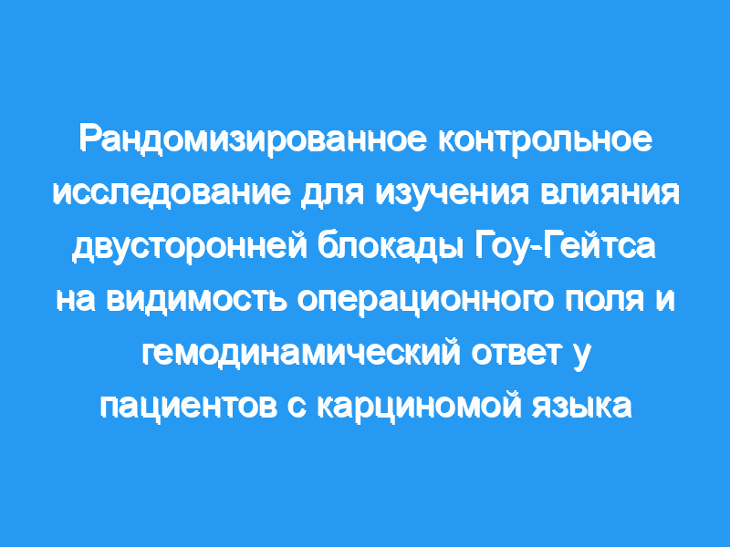 Реакция гемодинамики на стресс во время хирургической стимуляции была значительно ниже в группе G. Оценка видимости операционного поля была лучше в группе G (p0.002). Использование морфина интраоперационно в группе G было меньше (р= 0,001) ЗАКЛЮЧЕНИЕ: Двусторонняя блокада Гоу-Гейтса улучшает обзор операционного поля и гемодинамический ответ у пациентов, перенесших операцию по поводу карциномы языка.
