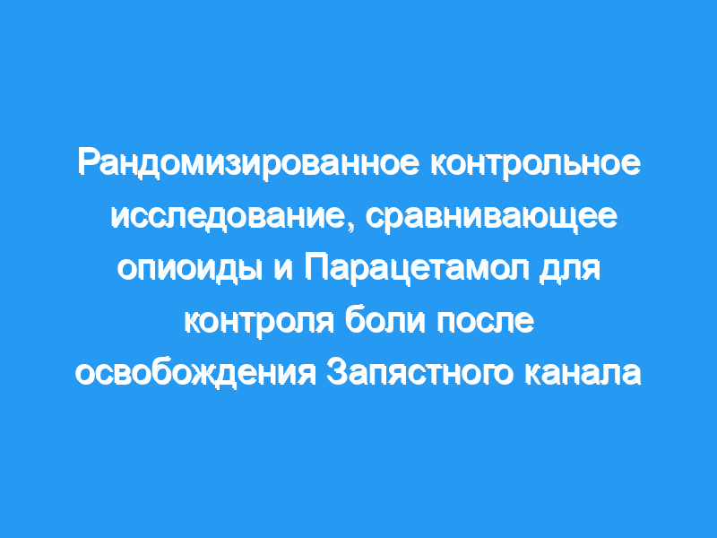 Опиоиды часто используются для контроля боли после освобождения запястного канала (CTR). Однако в немногих исследованиях изучалось, необходимо ли использование опиоидов для контроля боли после КТР. Целью данного исследования является сравнение эффективности кодеина и парацетамола для контроля боли после КТР.