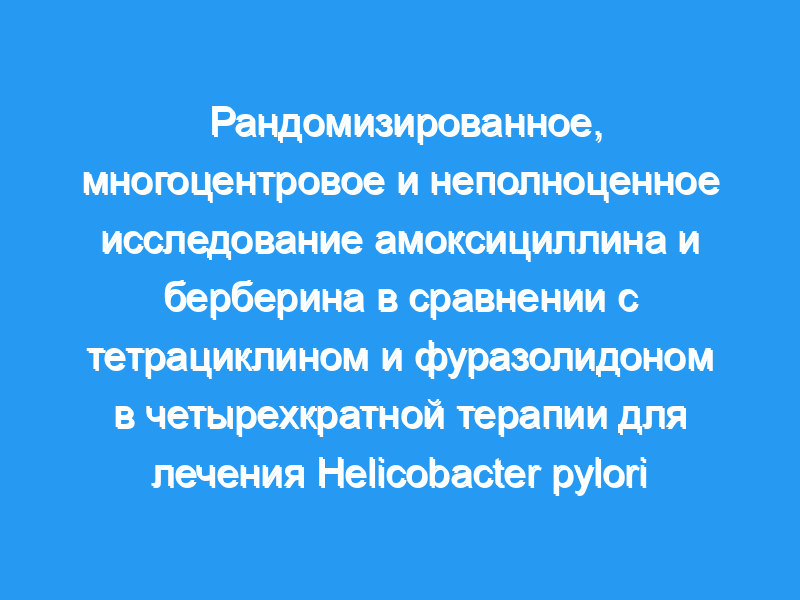 Инфекция Helicobacter pylori (H. pylori) тесно связана с язвами желудка и аденокарциномами желудка. Мы стремились оценить эффективность и безопасность четырехкратного режима с амоксициллином плюс берберин по сравнению с тетрациклином плюс фуразолидон в спасательной терапии для эрадикации H. pylori.
