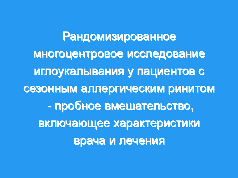 В крупном рандомизированном исследовании у пациентов с сезонным аллергическим ринитом (САР) иглоукалывание было более эффективным по сравнению с фиктивной иглоукалыванием и спасательными препаратами. Цель этой статьи — описать характеристики врачей, участвующих в исследовании, и описать пробное вмешательство в соответствии с руководящими принципами STRICTA (Стандарты отчетности о вмешательствах в контролируемых исследованиях иглоукалывания), чтобы сделать детали пробного вмешательства более прозрачными для исследователей и врачей.