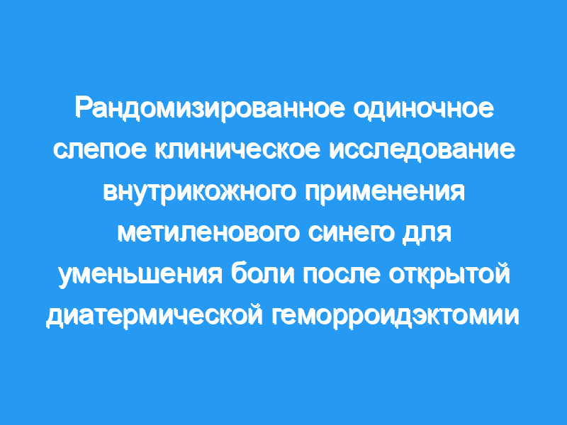 Открытая геморроидэктомия была связана со значительной послеоперационной болью и дискомфортом. Показано, что перианальная внутрикожная инъекция метиленового синего приводит к удалению перианальных нервных окончаний и может привести к временному облегчению боли после геморроидэктомии. Мы предположили, что введение внутрикожного метиленового синего уменьшит послеоперационную боль в начальный период после операции. Метод: Было проведено рандомизированное, проспективное, однократное слепое плацебо-контролируемое исследование. Пациенты были рандомизированы для внутрикожной инъекции при геморроидэктомии либо 4 мл 1% метиленового синего и 16 мл 0,5% маркаина, либо 16 мл 0,5% маркаина и 4 мл физиологического раствора перед хирургическим вскрытием. Пациентов просили заполнить дневник боли с помощью визуальной аналоговой шкалы. Основным показателем результата была оценка боли и использование анальгетиков. Вторичными исходами были осложнения.