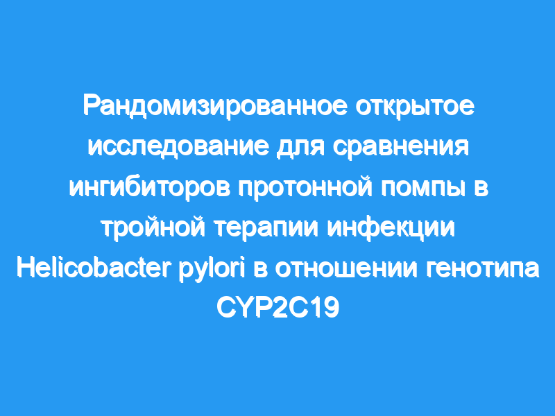 Предпосылки и цели: Генетический полиморфизм цитохрома P450 (CYP) 2C19 влияет на эффективность эрадикационной терапии Helicobacter pylori ингибитором протонной помпы (ИПП) и амоксициллином. Однако при тройной терапии (ИПП плюс амоксициллин и кларитромицин) мало что известно о влиянии полиморфизма CYP2C19 или применении рабепразола, который плохо метаболизируется CYP2C19. Эффективность трех ИПП (омепразола, лансопразола и рабепразола) в 1-недельном тройном режиме сравнивали в отношении полиморфизма CYP2C19. Способ: Сто восемьдесят три пациента были рандомизированы для получения одного из следующих режимов: амоксициллин 500 мг внутривенно, кларитромицин 200 мг внутривенно и ИПП (омепразол 20 мг, лансопразол 30 мг или рабепразол 10 мг) внутривенно.. Полиморфизм CYP2C19 анализировали с помощью полиморфизма длины рестрикционного фрагмента ПЦР.
