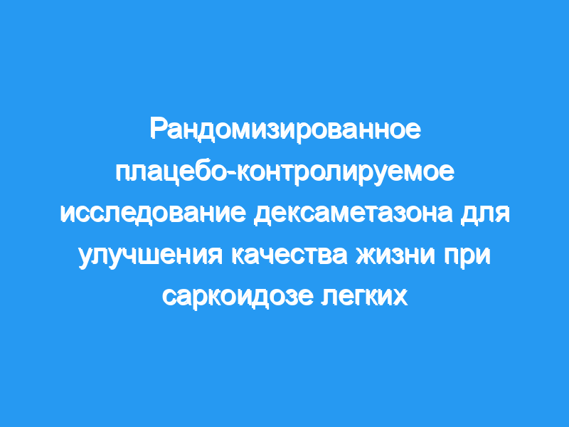 Многие пациенты с саркоидозом легких испытывают снижение качества жизни. Хотя пероральные кортикостероиды являются наиболее распространенными средствами, используемыми при саркоидозе, очень мало известно о их влиянии на качество жизни.