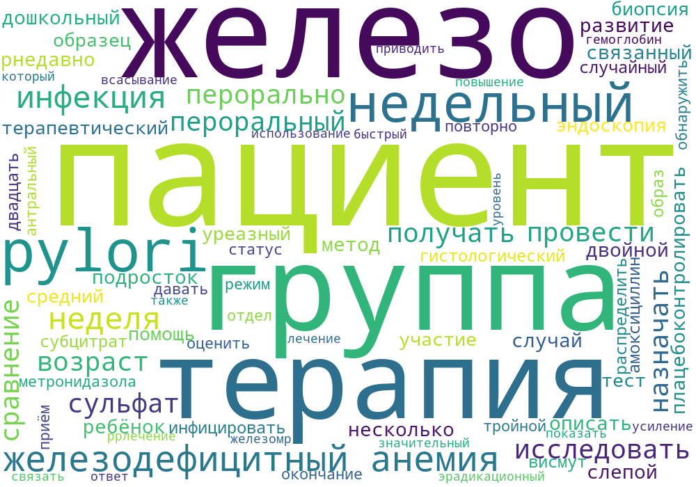 Недавно было описано несколько случаев, связанных с инфекцией H. pylori и железодефицитной анемией. Мы исследовали роль инфекции H. pylori в развитии железодефицитной анемии у детей и подростков дошкольного возраста. Пациенты и методы: Мы провели двойное слепое плацебо-контролируемое терапевтическое исследование с участием 43 пациентов (средний возраст 15,4 года) с железодефицитной анемией. Была проведена эндоскопия, и образцы биопсии были исследованы с помощью уреазного теста и гистологического анализа. Двадцать два из 25 пациентов, инфицированных H. pylori, были случайным образом распределены на три группы. Пациентам группы А назначали перорально сульфат железа и 2-недельный курс субцитрата висмута, амоксициллина и метронидазола. Пациентам группы В давали плацебо для приема железа и 2-недельный курс тройной терапии. Пациентам группы С назначали перорально сульфат железа и 2-недельный курс плацебо. Статус железа был повторно оценен через 4 недели и 8 недель после окончания 2-недельного режима.