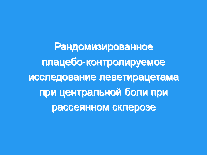 Это было рандомизированное двойное слепое плацебо-контролируемое перекрестное исследование.- повторное исследование с леветирацетамом в дозе 3000 мг/сут по сравнению с плацебо (6-недельные периоды лечения). В исследование были включены пациенты с рассеянным склерозом, симптомами и признаками, соответствующими центральной невропатической боли и болевым симптомам в течение более 6 месяцев, а также с интенсивностью боли более 4 баллов по шкале от 0 до 10 баллов.