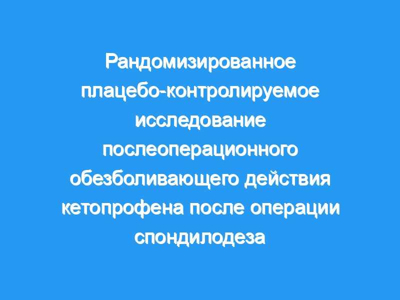 Аддитивный эффект нестероидных противовоспалительных препаратов, вводимых вместе с пропацетамолом после крупных ортопедических операций, не изучался. Таким образом, мы провели проспективное плацебо-контролируемое исследование для оценки обезболивающего эффекта кетопрофена у пациентов, перенесших операцию по спондилодезу и получающих пропацетамол.
