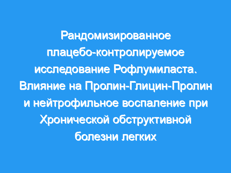 Мы провели одноцентровое плацебо-контролируемое рандомизированное исследование, в котором изучалось 12-недельное лечение рофлумиластом в дополнение к текущей терапии при ХОБЛ средней и тяжелой степени с хроническим бронхитом. Испытуемым были проведены анализы мокроты и крови, тестирование функции легких, толерантность к физической нагрузке и оценка качества жизни через 0, 4 и 12 недель. Измерения и основные результаты: Двадцать семь пациентов были включены в анализ намерения лечить. Лечение Рофлумиластом снижало уровень AcPGP в мокроте более чем на 50% (P <, 0,01) и пролилэндопептидазу на 46% (P = 0,02), без значительного улучшения активности лейкотриен-А4-гидролазы по сравнению с плацебо. Рофлумиласт также снижает другие маркеры воспаления. Не было никаких существенных изменений в функции легких, качестве жизни или переносимости физической нагрузки между группами, получавшими рофлумиласт, и группами, получавшими плацебо.