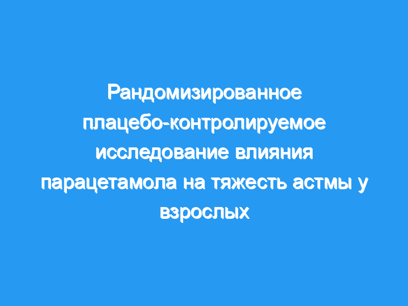 Единая научно-исследовательская амбулаторная клиника. Участники: 94 взрослых с астмой легкой и средней степени тяжести получили рандомизированное лечение, 85 завершили исследование. Ключевыми критериями включения были возраст 18-65 лет, объем форсированного выдоха за 1 с (ОФВ1) и более, прогнозируемый на 70%, концентрация метахолина, вызывающая снижение ОФВ1 на 20% (PC20) между 0,125 и 16 мг/мл. Ключевые критерии исключения включали обострение астмы в течение предыдущих 2 месяцев, текущее регулярное использование парацетамола, использование высоких доз аспирина или нестероидных противовоспалительных препаратов, текущее или прошлое курение сигарет и более 10 лет. Вмешательства: В 12-недельном рандомизированном двойном слепом плацебо-контролируемом исследовании с параллельными группами участники получали 12 недель по 1 г парацетамола два раза в день или плацебо два раза в день. Первичные и вторичные показатели результатов: Основной переменной результата был BHR, измеренный как PC20 на 12-й неделе. Вторичные переменные исхода включали ОФВ1, фракционный уровень выдыхаемого оксида азота (FeNO) и оценку по опроснику контроля астмы (ACQ).