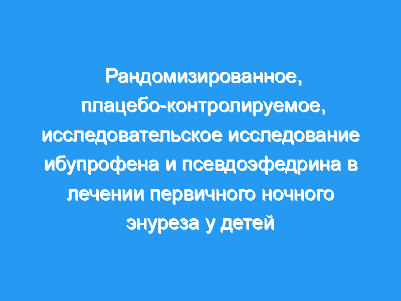 Это исследовательское рандомизированное двойное слепое плацебо-контролируемое исследование продолжительностью 14 дней, проведенное в 22 учреждениях первичной медико-санитарной помощи в Соединенных Штатах, было использовано для сравнения эффективности ибупрофена и псевдоэфедрина, вводимых отдельно или в комбинации, с плацебо для лечения первичного ночного энуреза (ПНЕ) у детей в возрасте от 6 до 11 лет.