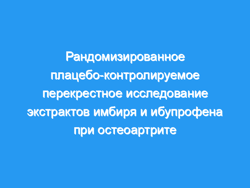 Альтернативная медицина широко используется пациентами с хронической болью, вызванной, например, остеоартритом. Лишь немногие из этих препаратов были протестированы в контролируемых условиях, и настоящее исследование было проведено для изучения действия экстракта имбиря, одного из самых популярных растительных лекарств. Дизайн: Экстракт имбиря сравнивали с плацебо и ибупрофеном у пациентов с остеоартритом тазобедренного или коленного сустава в контролируемом двойном слепом перекрестном исследовании с периодом отмены в одну неделю, за которым следовали три периода лечения в рандомизированной последовательности, каждый продолжительностью три недели. Ацетаминофен использовался в качестве спасательного средства на протяжении всего исследования. Исследование проводилось в соответствии с Надлежащей клинической практикой (Европейское руководство по GCP).