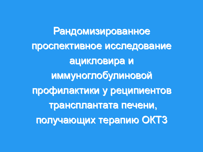 За последние 2 года мы проспективно рандомизировали 100 пациентов, получавших терапию ОКТ3, либо в контрольную группу (n = 50), либо в группу профилактики (n = 50). Профилактика состояла из шести доз внутривенного иммуноглобулина в течение 4 недель и перорального ацикловира в течение 3 месяцев после терапии ОКТ3.