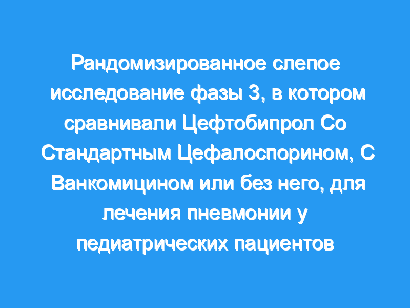 В этом многоцентровом, слепом, активно контролируемом исследовании фазы 3 пациенты в возрасте от 3 месяцев до 18 лет с HAP или CAP, требующие госпитализации, были рандомизированы (2:1) на цефтобипрол по сравнению со стандартным лечением (SoC) внутривенным цефалоспорином. (цефтазидим или цефтриаксон), с ванкомицином или без него. После, по крайней мере, 3-дневного внутривенного лечения пациенты, демонстрирующие клиническое улучшение, могут быть переведены на пероральный антибиотик, чтобы завершить лечение минимум на 7 дней.