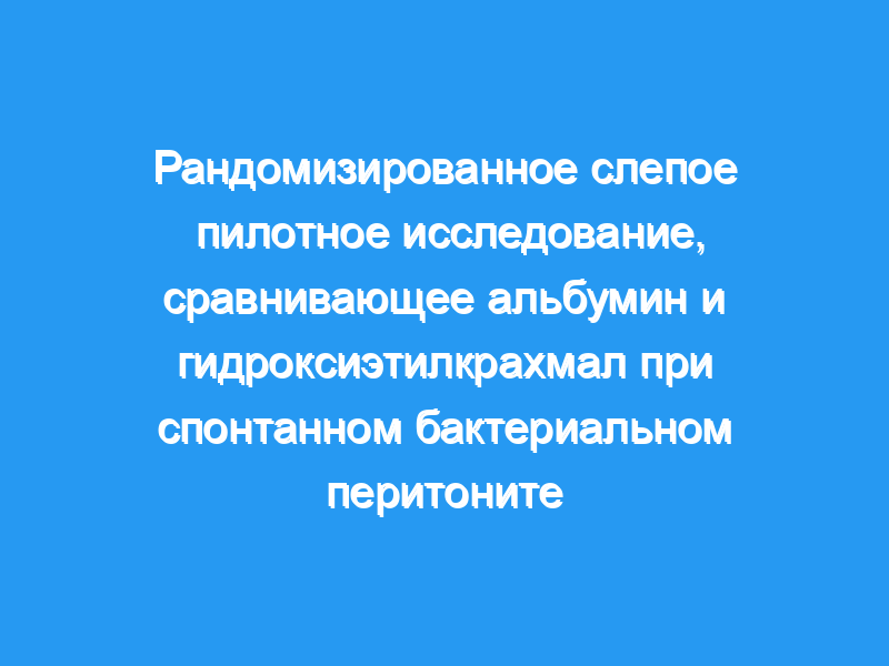 В этом рандомизированном слепом пилотном исследовании сравнивалось действие альбумина (10 пациентов) и синтетического расширителя плазмы гидроксиэтилкрахмала 200/0,5 (10 пациентов) на системную гемодинамику пациентов со спонтанным бактериальным перитонитом.