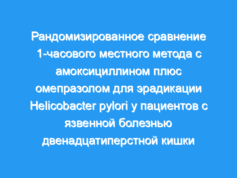 Обе схемы лечения, 1-часовой топический метод и амоксициллин с омепразолом, имеют низкие показатели эрадикации у пациентов с язвенной болезнью двенадцатиперстной кишки. Кроме того, местное лечение характеризуется высокой частотой побочных эффектов и плохой переносимостью. Основываясь на результатах нашего исследования, ни один из методов не может быть рекомендован для эрадикации H. pylori у пациентов с язвенной болезнью двенадцатиперстной кишки.