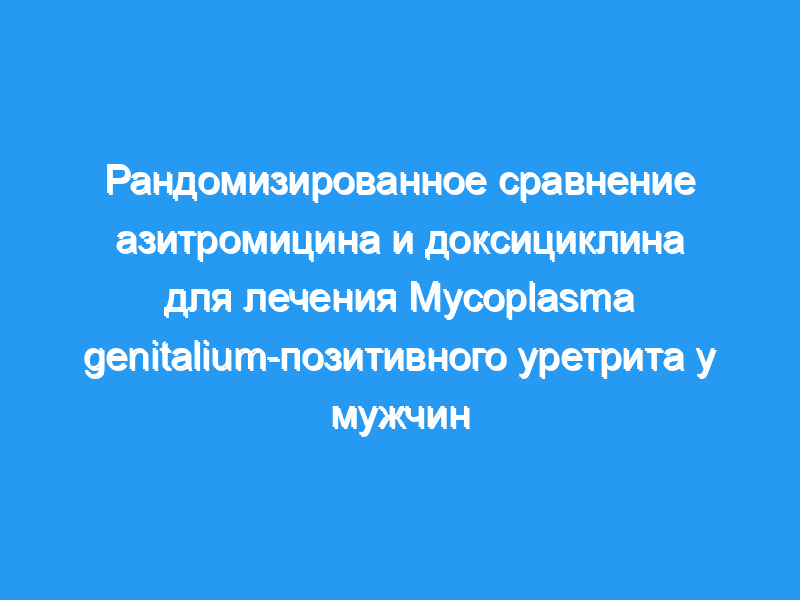 Несколько неконтролируемых обсервационных исследований показали, что антибиотики класса тетрациклинов могут быть неэффективны при лечении инфекции Mycoplasma genitalium. В настоящем исследовании сравнивалась эффективность 1 г азитромицина, вводимого в виде однократной дозы, с эффективностью 100 мг доксициклина, вводимого два раза в день в течение 7 дней в устранении инфекции M. genitalium.